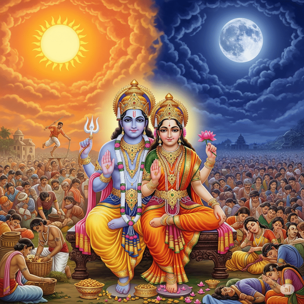 เราเชื่อว่า “แสงจากดวงอาทิตย์” คือ พระวิษณุที่อวตารมาช่วยเหลือโลก มนุษย์และทุกสรรพสิ่งให้ทำหน้าที่ของตัวเองต่อไป ทุกสิ่งที่เกิดขึ้นจึงมีหน้าที่ที่ลิขิตมาแล้ว แม้ในเวลากลางคืน เราก็ยังมีแสงจันทร์ ซึ่งก็คือพระแม่ลักษมี ที่มอบความหวัง กำลังใจและการพักผ่อน ให้เราได้หยุด และในความมืดที่สุด บางทีเราก็ได้เห็น “แสงเล็ก ๆ” ของตัวเองชัดกว่าตอนกลางวันเสียอีก แสงจึงไม่ได้หมายถึงเพียงแค่สิ่งที่ตามองเห็นได้ แต่มันคือ พลังงานชีวิต